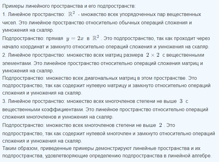 1. Привести несколько примеров линейного пространства и его подпространства. Обосновать.