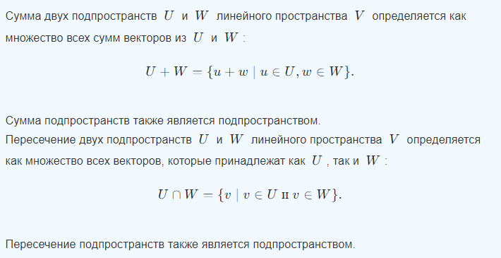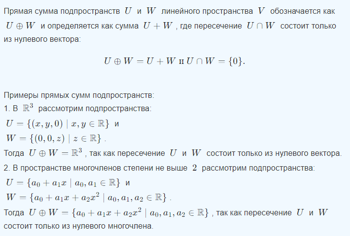 1. Определение прямой суммы подпространств. Привести несколько примеров.