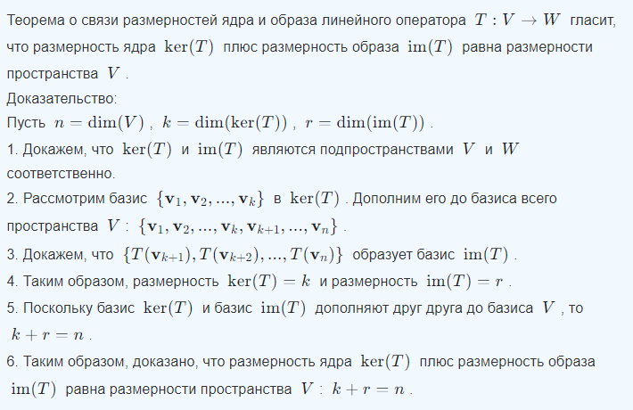 1. Теорема о связи размерностей ядра и образа. Доказательство.