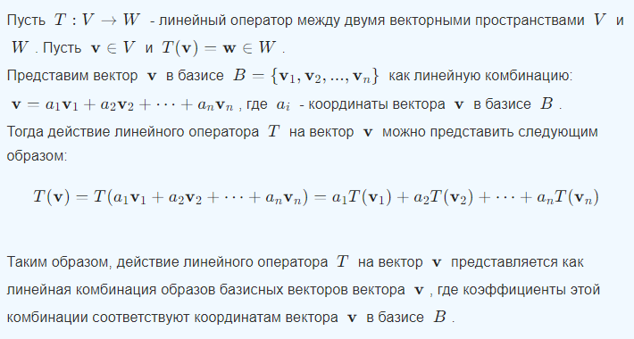1. Определение матрицы линейного оператора. Действие линейного оператора на вектор (вывод формулы)