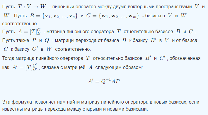 1. Формула связи между матрицами линейного оператора в разных базисах. (с выводом)
