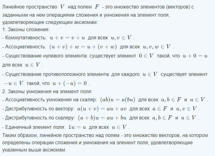 1. Определение линейного пространства над полем (аксиомы входят в определение).