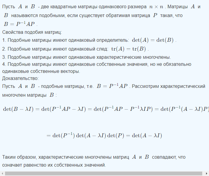 1. Подобные матрицы. Свойства подобия. Доказательство.
