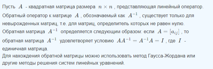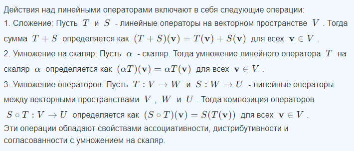 1. Действия над линейными операторами. Матрицы суммы, умножения на число, умножения операторов, обратного оператора