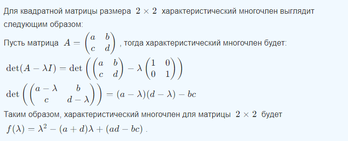 1. Характеристическая матрица и характеристический многочлен. Характеристический многочлен для n=2 и для n=3