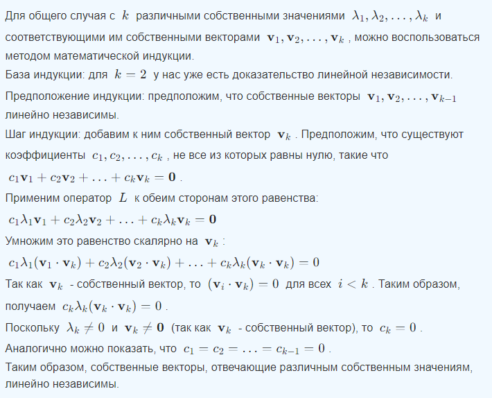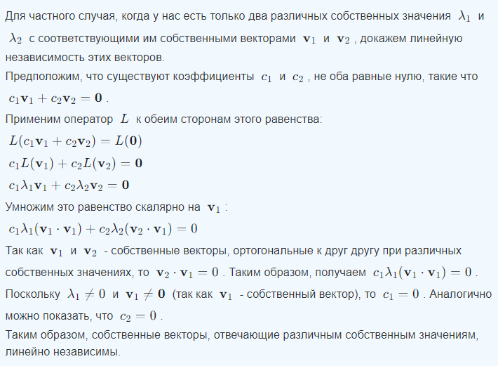 1. Теорема о линейной независимости собственных векторов, отвечающих различным собственным значениям. Доказательство для общего случая и доказательство для частного случая