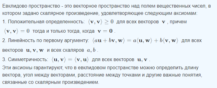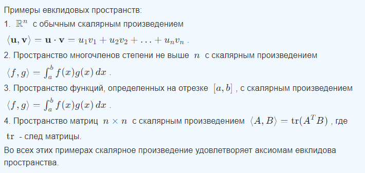 1. Определение евклидова пространства (аксиомы!). Примеры евклидовых пространств