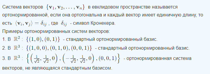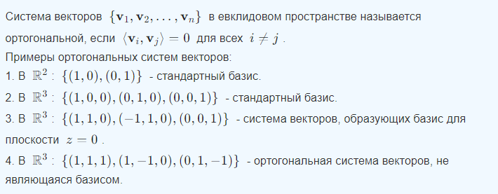 1. Определение ортогональной системы векторов и ортонормированной системы векторов. Привести примеры