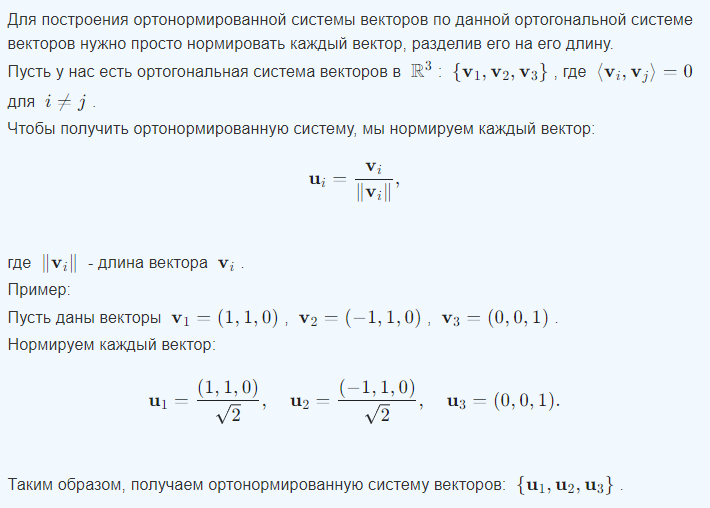 1. Построение по данной ортогональной системе векторов ортонормированной системы векторов. Пример.
