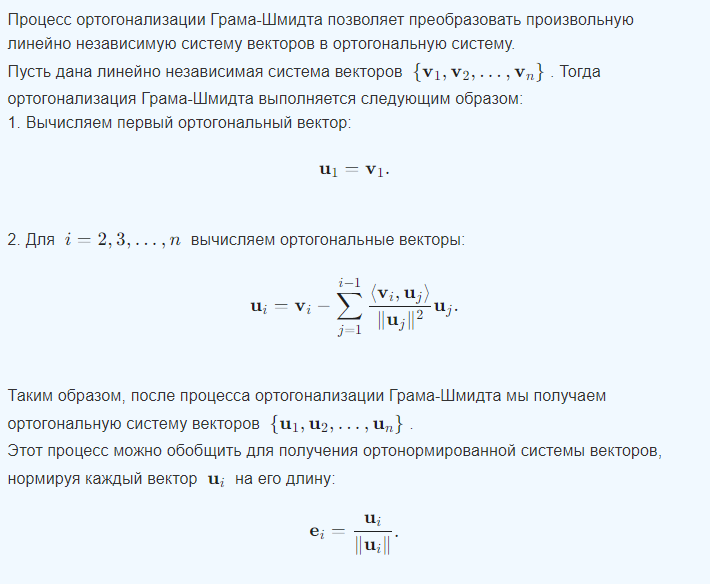 1. Процесс ортогонализации Грама-Шмидта. (с выводом)