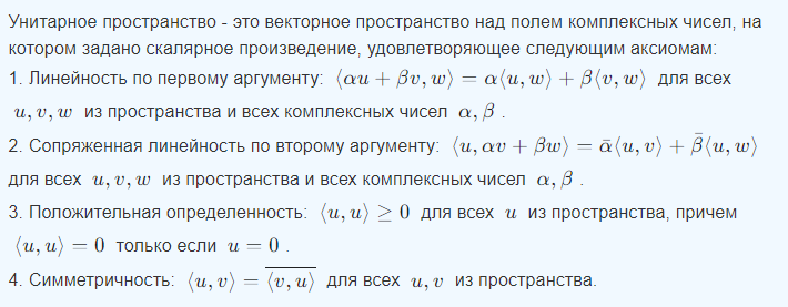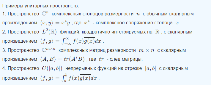 1. Определение унитарного пространства (аксиомы!). Примеры унитарных пространств