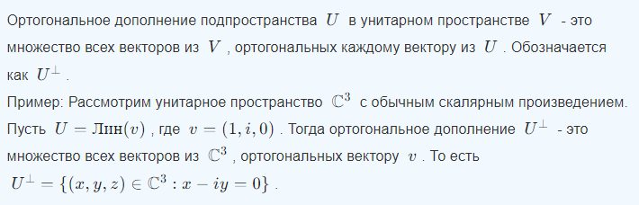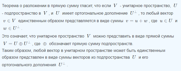 1. Определение ортогонального дополнения. Теорема о разложении в прямую сумму. Привести примеры