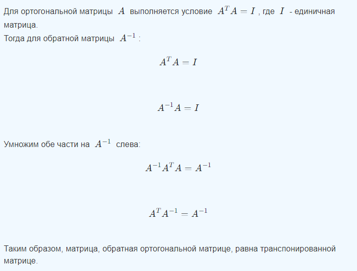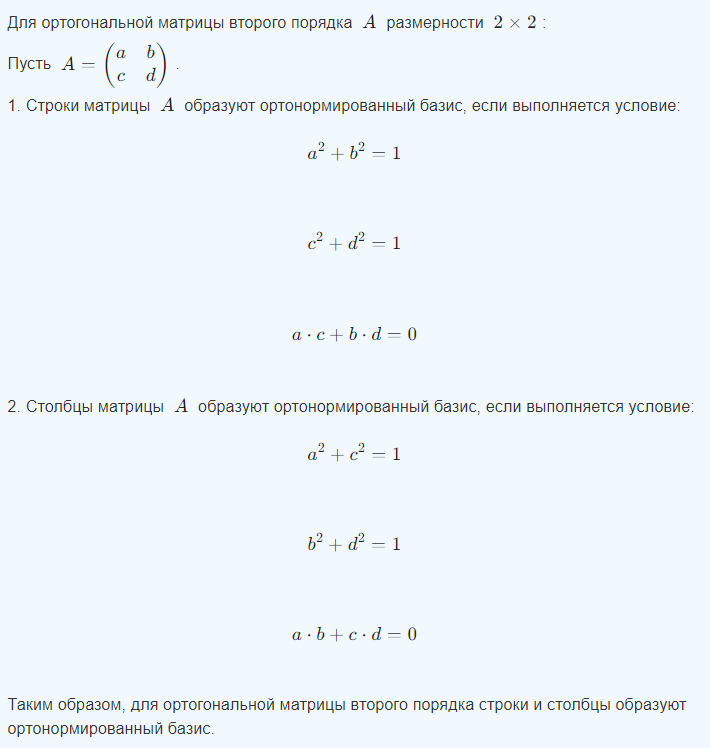 1. Вывод утверждения о том, что строки и столбцы ортогональной матрицы образуют ортонормированный базис (для матриц второго порядка), вывод утверждения, что матрица, обратная ортогональной, равна транспонированной матрице