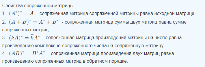 1. Сопряженная матрица, еѐ свойства, примеры сопряженных матриц