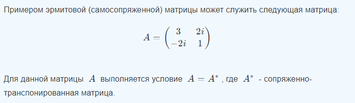 1. Эрмитова (самосопряженная) матрица. Определение, свойства, примеры