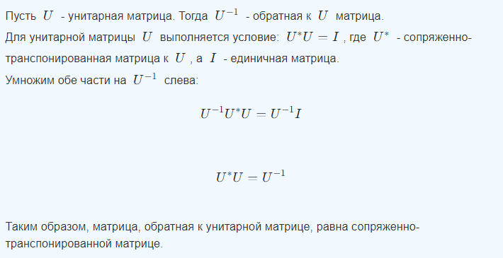 1. Вывод утверждения о том, что строки и столбцы унитарной матрицы образуют ортонормированный базис (для матриц второго порядка), вывод утверждения, что матрица, обратная унитарной, равна сопряженной матрице