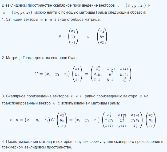 1. Нахождение скалярного произведения в евклидовом пространстве с помощью матрицы Грама (вывод формулы для случая трехмерного евклидова пространства)