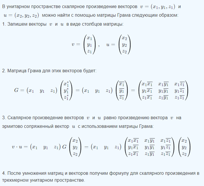 1. Нахождение скалярного произведения в унитарном пространстве с помощью матрицы Грама (вывод формулы для случая трехмерного унитарного пространства)