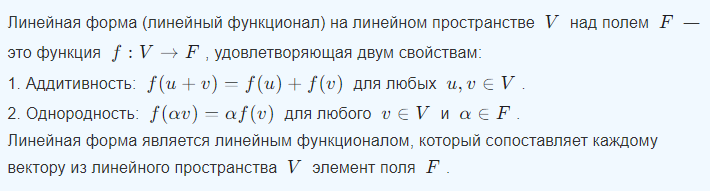 1. Определение линейной формы (линейного функционала). Привести примеры