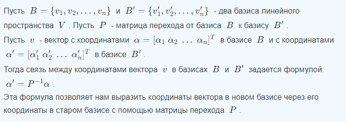 1. Матрица перехода. Определение, вывод формул, связывающих координаты вектора в старом базисе с его координатами в новом базисе