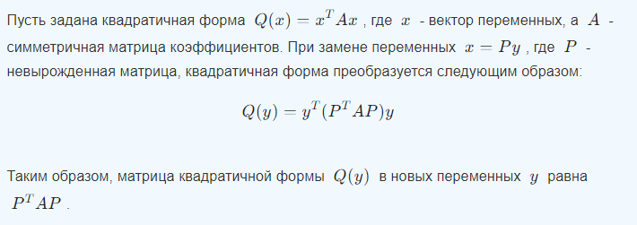 1. Замена переменных в квадратичной форме, вывод формулы.
