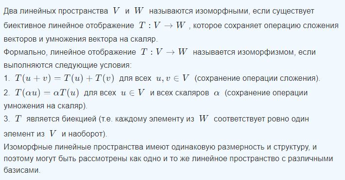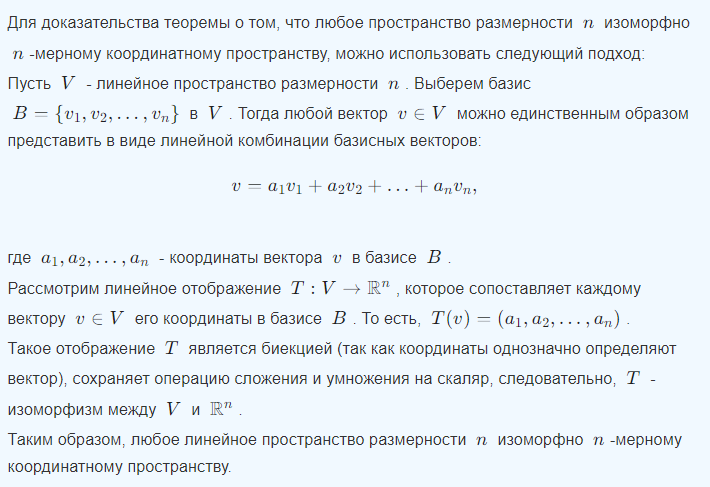 1. Определение изоморфных линейных пространств. Доказать теорему о том, что любое пространство размерности n изоморфно n-мерному координатному пространству