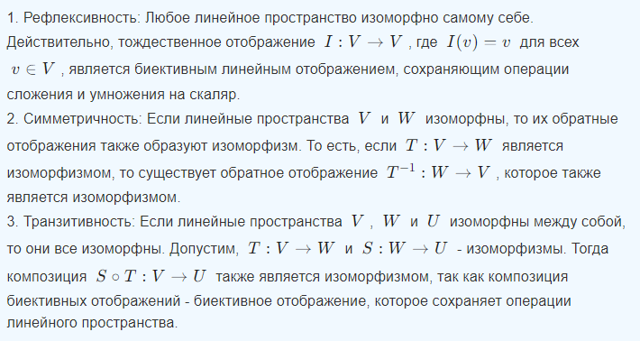 1. Определение изоморфных линейных пространств. Привести примеры. Свойства изоморфизма (рефлексивность, симметричность, транзитивность). Доказательство