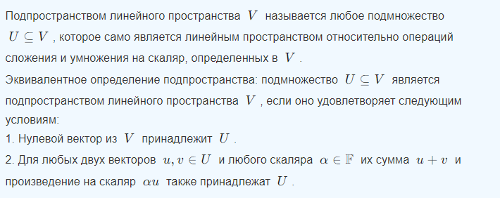 1. Определение подпространства линейного пространства. Эквивалентное определение